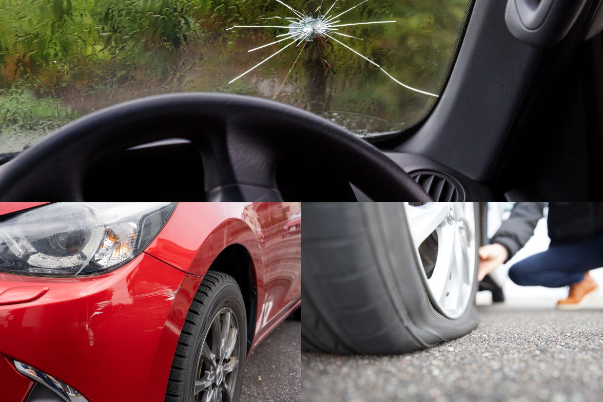 ※飛び石による窓ガラスの単独破損の修理価格は15,000円程度です。15,000円を超える場合は、差額の支払いで修理可能です。